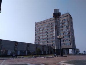 20年前、私が勤務していたロシア国営ラジオ放送局「ロシアの声」日本課の入っていた、ドーム・ラジオもまだありました。現在は、地元のテレビ局などが入っています。周囲に高層建築がはとんどない、アムール川ほとりの放送局。冬は、とにかく寒い風が吹きつけて、もう、通勤は大変!!当時は、ここで中国課と朝鮮課が、それぞれ中国と朝鮮半島に向けて放送を実施していました。