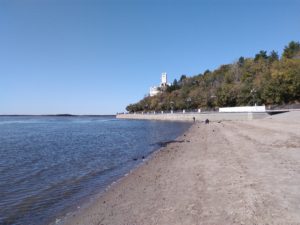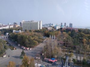 左の白い建築がインツーリスト。右側はもうアムール川。夏の朝、このホテルからさっとアムール散策に行くのは最高です!疲れたら、すぐに宿に戻れるうえ、ロシア革命前の建築群が美しい旧市街も、すぐそば。古くさい、ソ連っぽいよ、なんて言う人もいるけど、やっぱりソ連時代にここに建てられたのは理由があるのです。