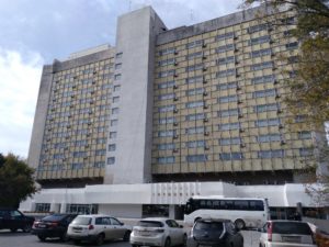 1977年に建設されたインツーリストホテル。今年、もともと株主だったハバロフスクの実業家が買い取り、オーナーが変わりました。今でもソ連風なレトロスタイルが好きだったのですが、リニューアルされています。なんでも、昔はあったお土産屋や売店はホテルビジネスに利益はないから、とオーナーは撤去を決めたそう。従業員も半分に減りました。