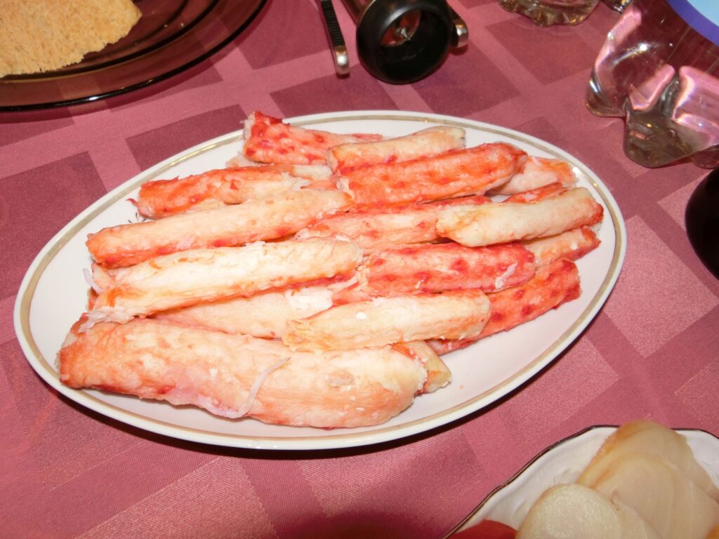 もう、懐かしいったらありゃしない。私が小学生の頃、一正食品の「オホーツク」がCMを流してカニカマの代名詞だったのだ。ハバロフスクで働きはじめ、社員食堂にカニカマと白菜のサラダを見たときは、本当に驚いた。ロシアと言えば、本物の蟹がとれるのに、好きこのんでカニカマをサラダにするなんて。やだ~、本物食べたいよ~!私は本物の蟹は大好物なので、ロシアに居ながら蟹よりカニカマばかり食べさせられる状況には納得がいかなかった…。それから長い月日を経て、ロシアの東はカムチャツカ半島を訪れた時、蟹を賞味する機会に恵まれる。安くて、美味しい。現地の地熱発電所の職員が「カムチャツカ半島の北部はとても貧しい。食べるものがないんですよ」まあ…、知らなかったわ。そんなに?「蟹以外は」。それだけ蟹が取れる夢と魔法の王国なのだ!ちなみにサーモンも安くて美味しい。パラトゥンカという温泉郷の宿で、むいた蟹足とサーモンにいくらをたっぷり食べて、確か3,000円もしなかった。この国際情勢では、もうしばらく訪れることはないのが、残念…。