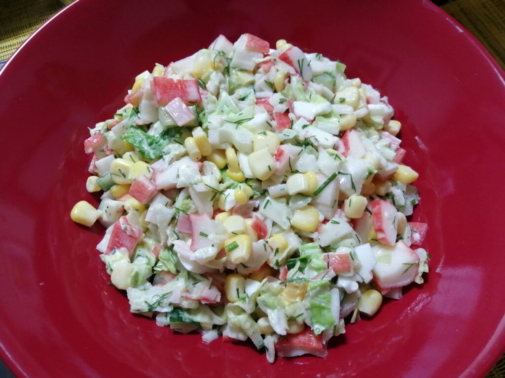 まあ、そんな昔話はさておき、ロシア語圏ではみんな大好きカニカマのサラダと豚肉のグレーヴィー・ソース煮を教えて頂きます!